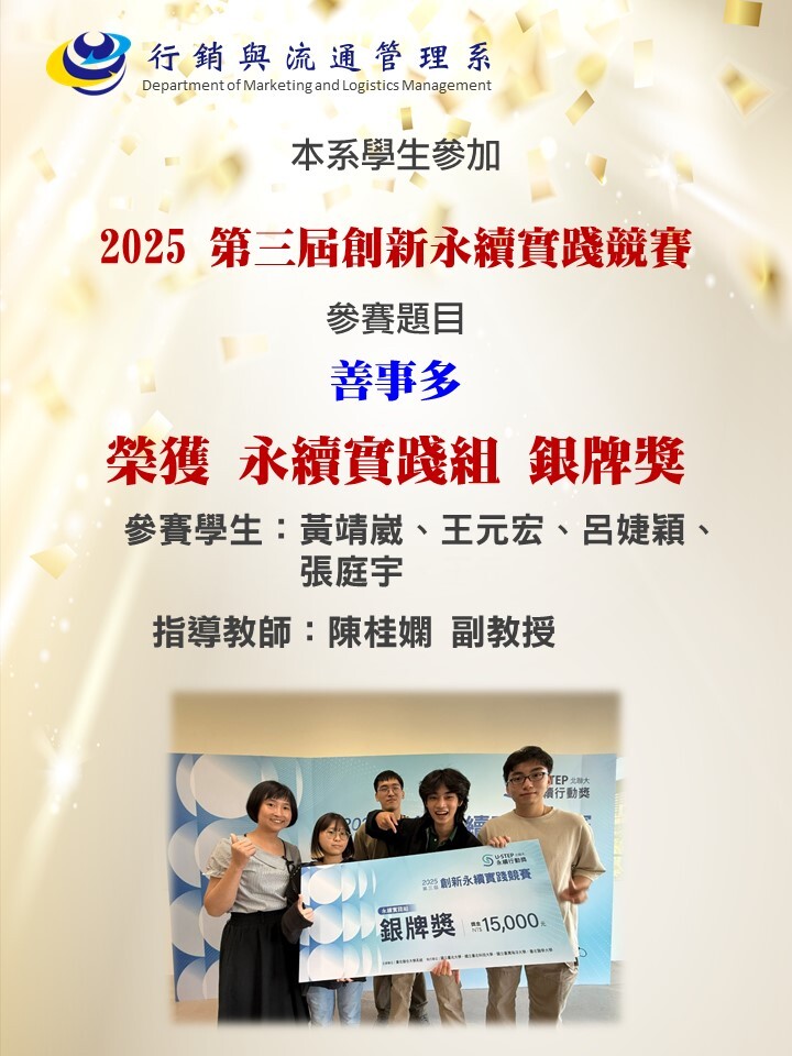 【行管系】狂賀~本系學生參加「2025 第三屆創新永續實踐競賽」榮獲銀牌獎!