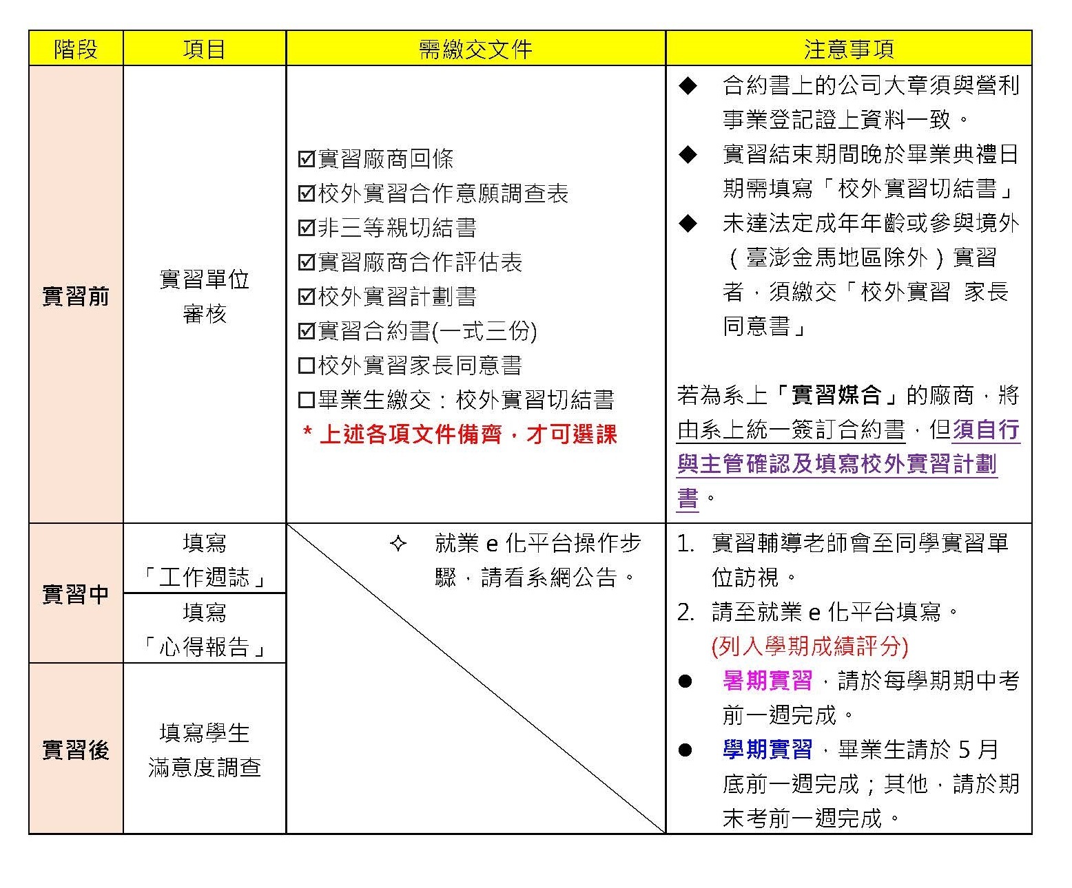 【校外實習作業流程注意事項】